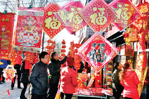 2月1日,原平市年貨市場上紅紅火火,一派喜慶景象。市民們高高興興選年貨,歡樂祥和喜迎新春佳節(jié)。(趙月仁 攝)