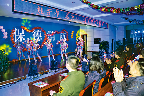 近日,保德縣委宣傳部、縣文化局組織文藝工作者走進駐地警營,為他們書寫春聯,并獻上了精彩的文藝演出。圖為演出現場。(李富永 攝)