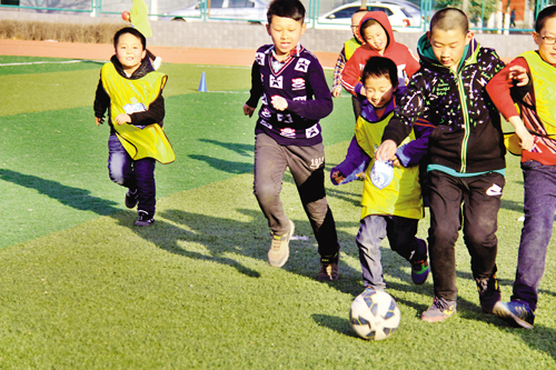 3月12日,原平農(nóng)校足球場內(nèi),小球迷正在進行對抗訓練。從小培養(yǎng)兒童熱愛運動,熱愛足球,已成為時下一種教育理念。周末節(jié)假日兒童不再上各種培訓班,踢足球,增體質(zhì),堅定自信心,已成為一種習慣:我運動,我健康,我是最棒的?。ㄆ?攝)