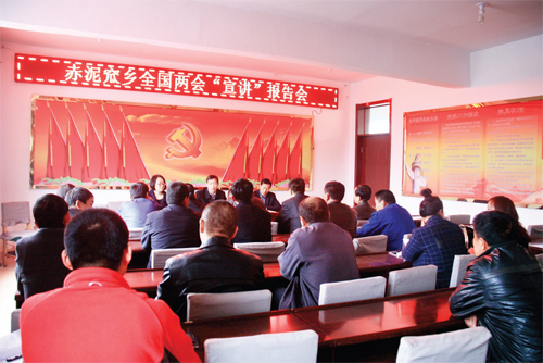 3月21日下午,靜樂縣全國(guó)“兩會(huì)”宣講報(bào)告會(huì)在赤泥窊鄉(xiāng)巡回開講。圖為主講人對(duì)“兩會(huì)”涉及的“三農(nóng)”內(nèi)容展開全面解讀。(劉盛甫 攝)