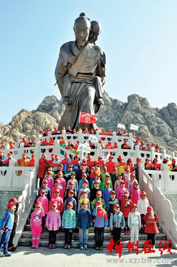 3月28日,原平市興原實(shí)驗(yàn)小學(xué)某班級利用課余時間,來到天牙山風(fēng)景區(qū)忠孝廣場,開展“青少年朗讀中國古代忠孝小故事”活動,讓孩子們更加懂得以善、以孝對待家人。(褚震 段陸榮 攝)