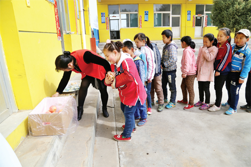 4月12日,在靜樂縣神峪溝鄉(xiāng)張貴村小學(xué),該校學(xué)生正在領(lǐng)取免費營養(yǎng)餐。張貴村小學(xué)是該縣實施國家農(nóng)村義務(wù)教育階段學(xué)生營養(yǎng)改善計劃的學(xué)校之一,按照每生每天4元的補(bǔ)助標(biāo)準(zhǔn),該校每年有4萬余元用于學(xué)生加餐補(bǔ)助。(閆曉梅 攝)
