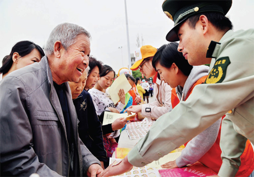 忻州消防志愿者走上街頭助力申旅