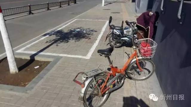 旁邊的白圈專門(mén)用來(lái)放置自行車,可車車們咋都在外面?(李冬梅 攝)