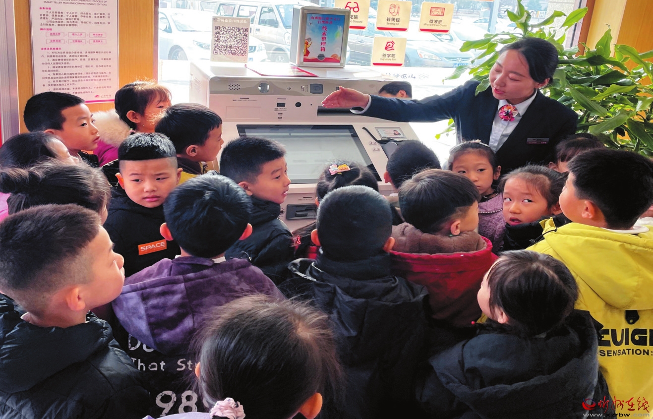活動伊始,銀行工作人員帶領(lǐng)孩子們沉浸式體驗銀行各功能區(qū),從叫號區(qū)、業(yè)務(wù)辦理區(qū)到智慧柜員機、自助存取款機,詳細講解日常運營流程和業(yè)務(wù)辦理步驟。孩子們?nèi)褙炞⒌赜^察設(shè)備,踴躍提問:“為什么取款機能‘吐’錢?”“柜臺阿姨怎么數(shù)錢這么快?”工作人員全程耐心解答,現(xiàn)場歡聲笑語不斷。