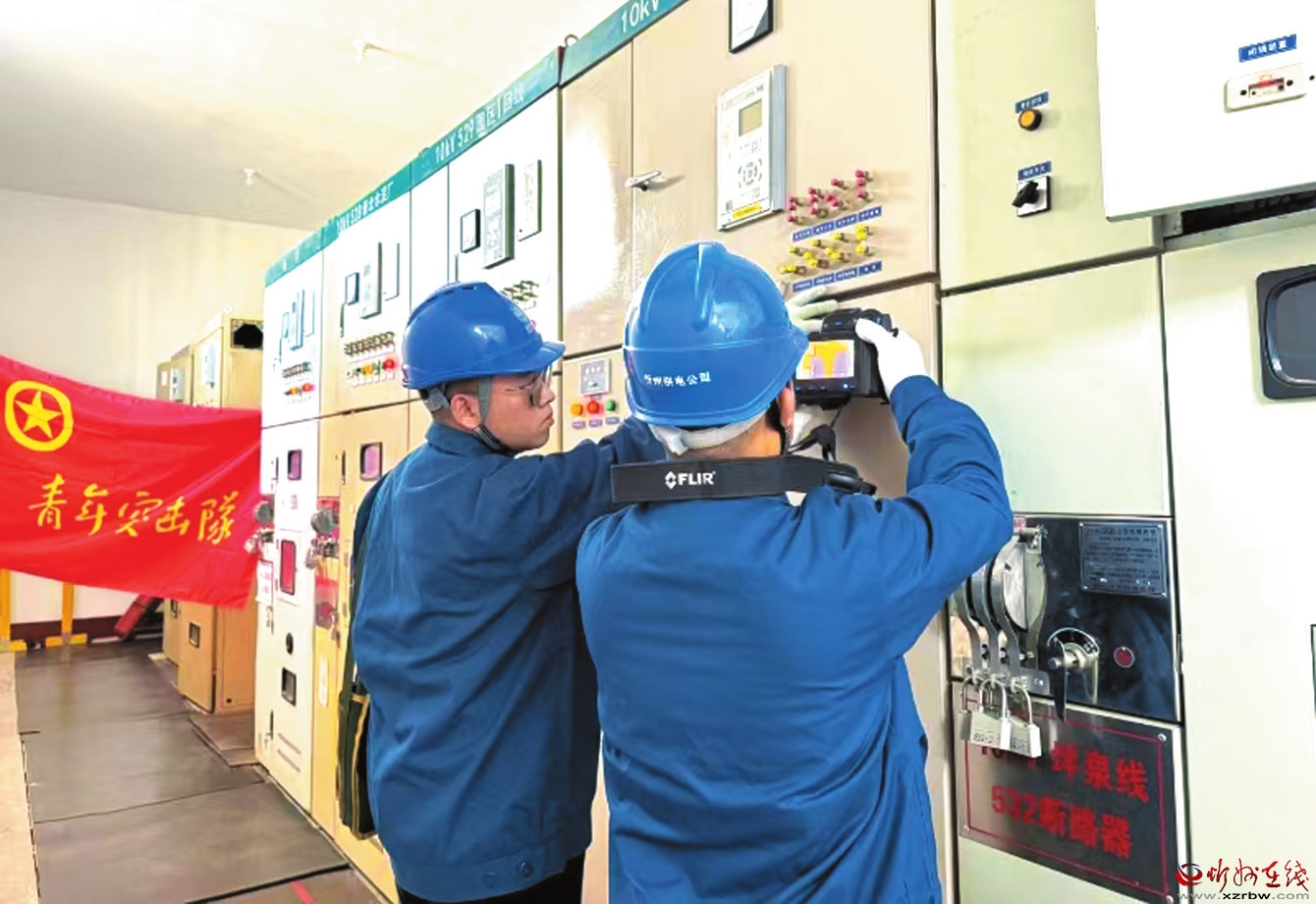 公司青年骨干利用紅外測(cè)溫儀對(duì)電力設(shè)備監(jiān)測(cè)