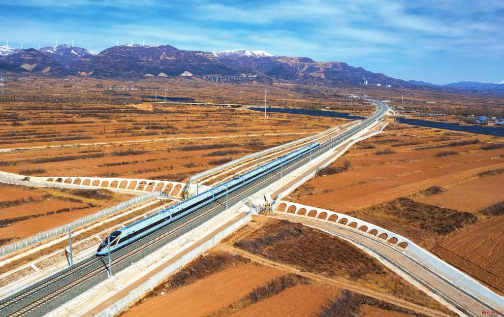 集大原高鐵開通以來,不僅方便了人們出行,更有力推動了地方旅游業(yè)快速發(fā)展。圖為剛剛駛出雁門關站的動車組列車。 (