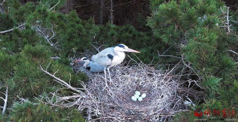 在五臺(tái)山景區(qū)鎮(zhèn)海寺的紅墻外,歷經(jīng)數(shù)百年風(fēng)雨的古樹群巍然聳立。近日,一座座“空中樓閣”在古樹間悄然支起——二十多只蒼鷺正叼著樹枝忙碌筑巢,有的已經(jīng)在新居里產(chǎn)卵開始孕育新生命,鎮(zhèn)海寺的“長(zhǎng)腿鄰居”伴隨著春天到來又回來了。這些身披青灰“長(zhǎng)衫”、自帶“飯勺”長(zhǎng)喙的優(yōu)雅生靈,已連續(xù)多年來此安家。它們的到來,為鎮(zhèn)海古寺增添了幾分靈動(dòng),也為來五臺(tái)山的游客帶來了無限樂趣。