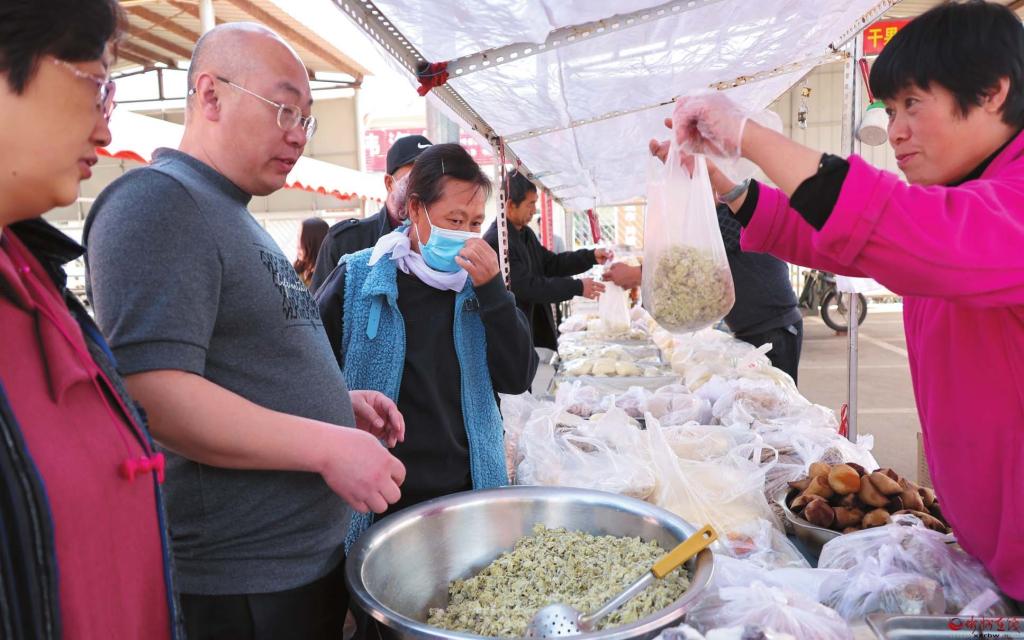 4月7日,市民在忻州城區(qū)光明市場購買蒸榆錢菜。春暖花開時(shí)節(jié),田地里的不少野菜都擺上了農(nóng)貿(mào)市場和超市,深受消費(fèi)者喜愛。(記者 宮清華攝)
