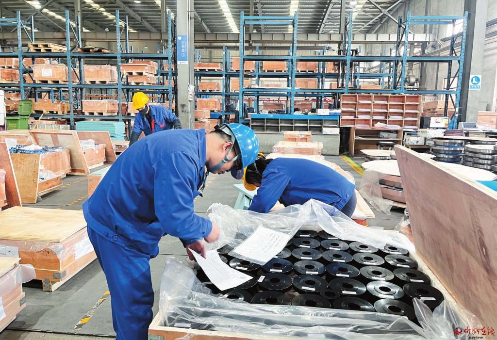 山西管家營(yíng)法蘭鍛造股份有限公司嚴(yán)格管理、科學(xué)生產(chǎn),通過(guò)設(shè)備升級(jí)與技術(shù)創(chuàng)新,為企業(yè)發(fā)展注入新動(dòng)能。圖為員工對(duì)外銷產(chǎn)品進(jìn)行檢測(cè)登記。(郭晶晶 劉婧攝)