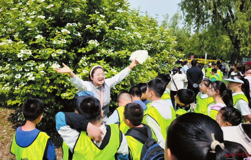 初夏時節(jié),忻府區(qū)花開正艷、氣候宜人,孩子們走出校園,開啟了一場別開生面的研學(xué)之旅,在大自然中增長知識、收獲成長。活動中,孩子們在老師的帶領(lǐng)下,了解本地植物種類和生態(tài)鏈相關(guān)知識,認(rèn)真填寫研學(xué)手冊。圖為5月10日,參加研學(xué)活動的學(xué)生在人民公園聽老師講解植物特性。 (記者 張存良攝)