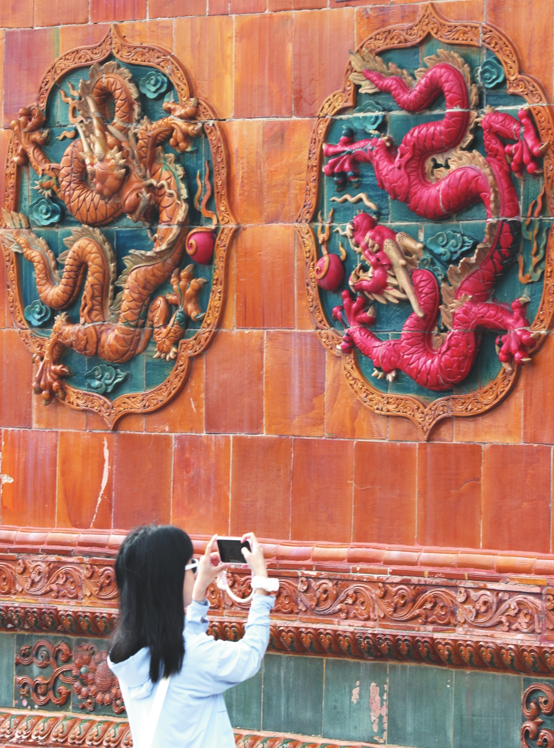 流光溢彩的烏金山九龍壁。晉中日報記者謝晉攝
