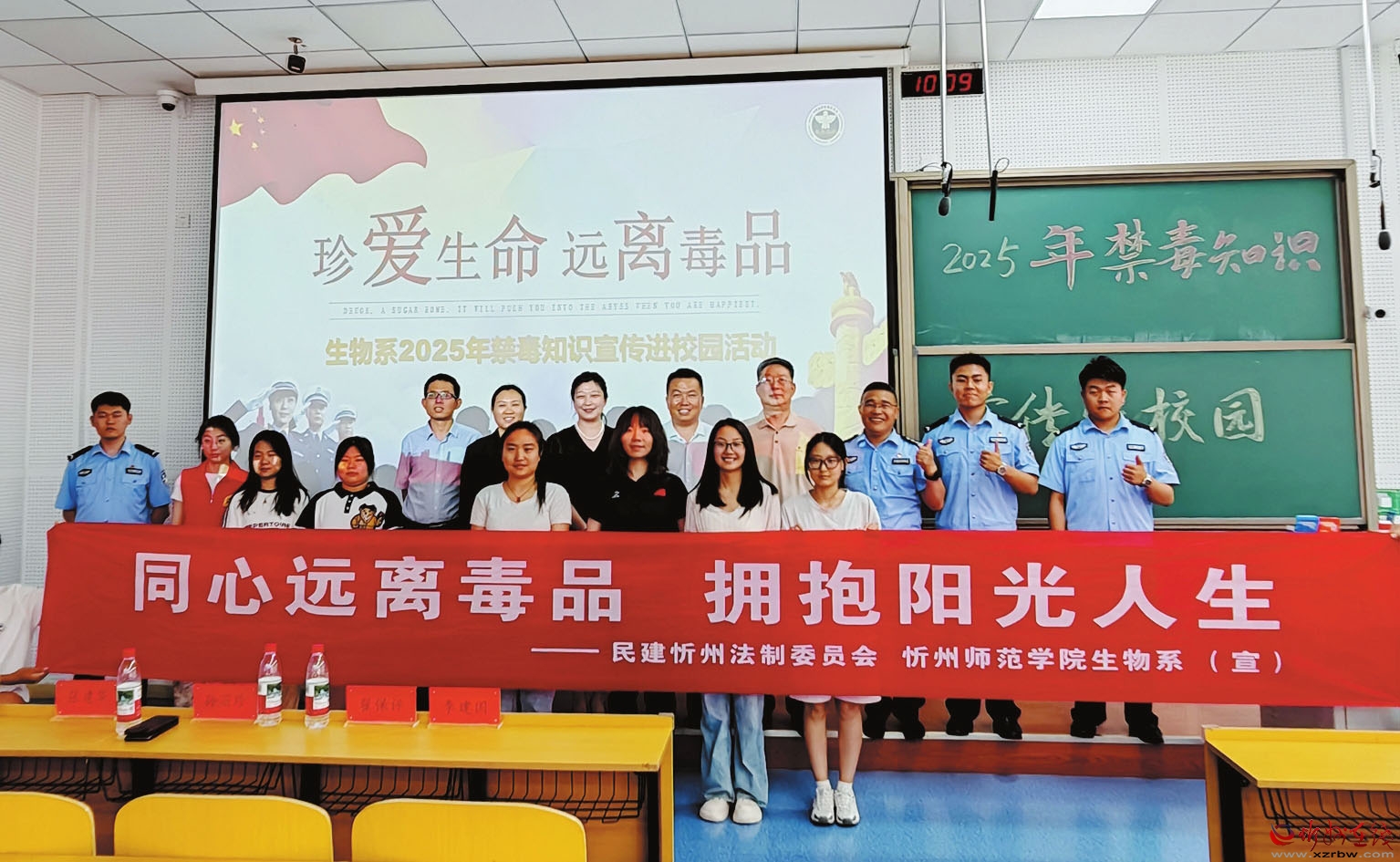 為切實(shí)增強(qiáng)青少年識毒、防毒、拒毒的意識和能力,守護(hù)校園凈土,護(hù)航青春夢想,6月13日上午,一場主題為“防范青少年藥物濫用”的聯(lián)合宣教活動在忻州師范學(xué)院生物系展開。民建忻州法制委員會攜手忻州師范學(xué)院生物系共同邀請山西省強(qiáng)制隔離戒毒所四級高級警長、山西“蒲公英”禁毒宣講團(tuán)團(tuán)長張俊和深入忻州師范學(xué)院,為150余名師生帶來了一場震撼心靈、啟迪思想的禁毒教育講座。