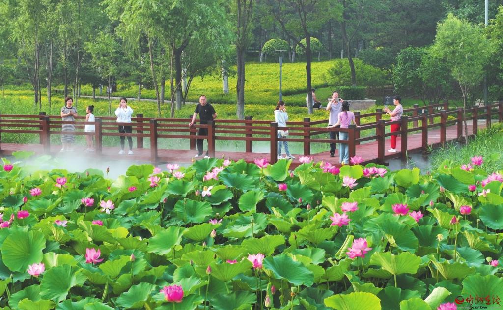 近日,云中河景區(qū)的荷花競相綻放,吸引眾多游客前往賞荷花、聞荷香。(