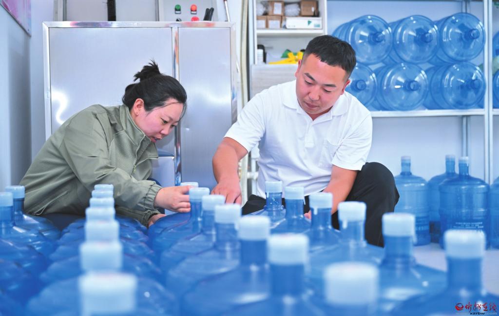 退伍軍人武靖返鄉(xiāng)創(chuàng)業(yè),在偏關(guān)縣創(chuàng)辦“武哈哈”純凈水公司,以軍人標(biāo)準(zhǔn)嚴(yán)控水質(zhì),讓家鄉(xiāng)父老喝上了健康、放心的優(yōu)質(zhì)飲用水,以實(shí)際行動助力鄉(xiāng)村振興。 (記者 馮曉磊攝)