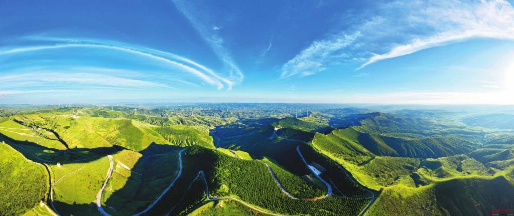 蒼翠欲滴的綠意,如潑墨般點染著黃土高原的溝壑梁峁,交織成一片生機(jī)盎然的“生態(tài)絨毯”。蜿蜒起伏的古長城和玉帶般優(yōu)雅伸展的長城一號旅游公路,形成一幅美不勝收的圖景。圖為長城一號旅游公路偏關(guān)段。(記者 馮曉磊攝)