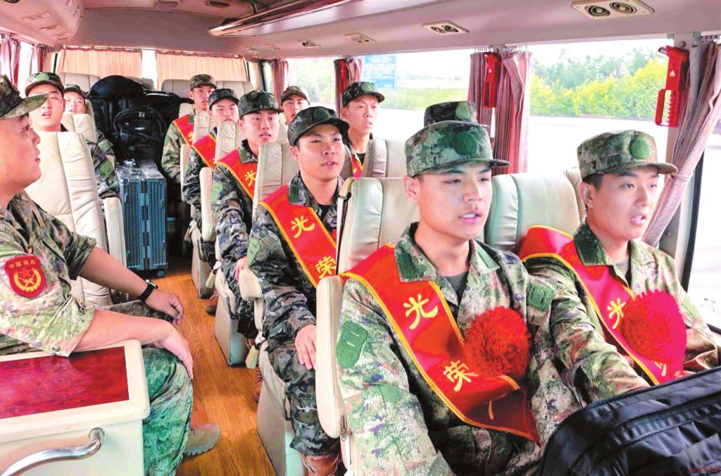 近日,定襄縣開(kāi)展新兵入伍送兵活動(dòng)。中巴車(chē)內(nèi),身著迷彩服的新兵們佩戴“光榮”綬帶與大紅花,精神抖擻、目光堅(jiān)定。這輛承載著殷切期望的專(zhuān)車(chē),將正式送他們踏上從軍報(bào)國(guó)的新征程。(郭婧蕾攝)