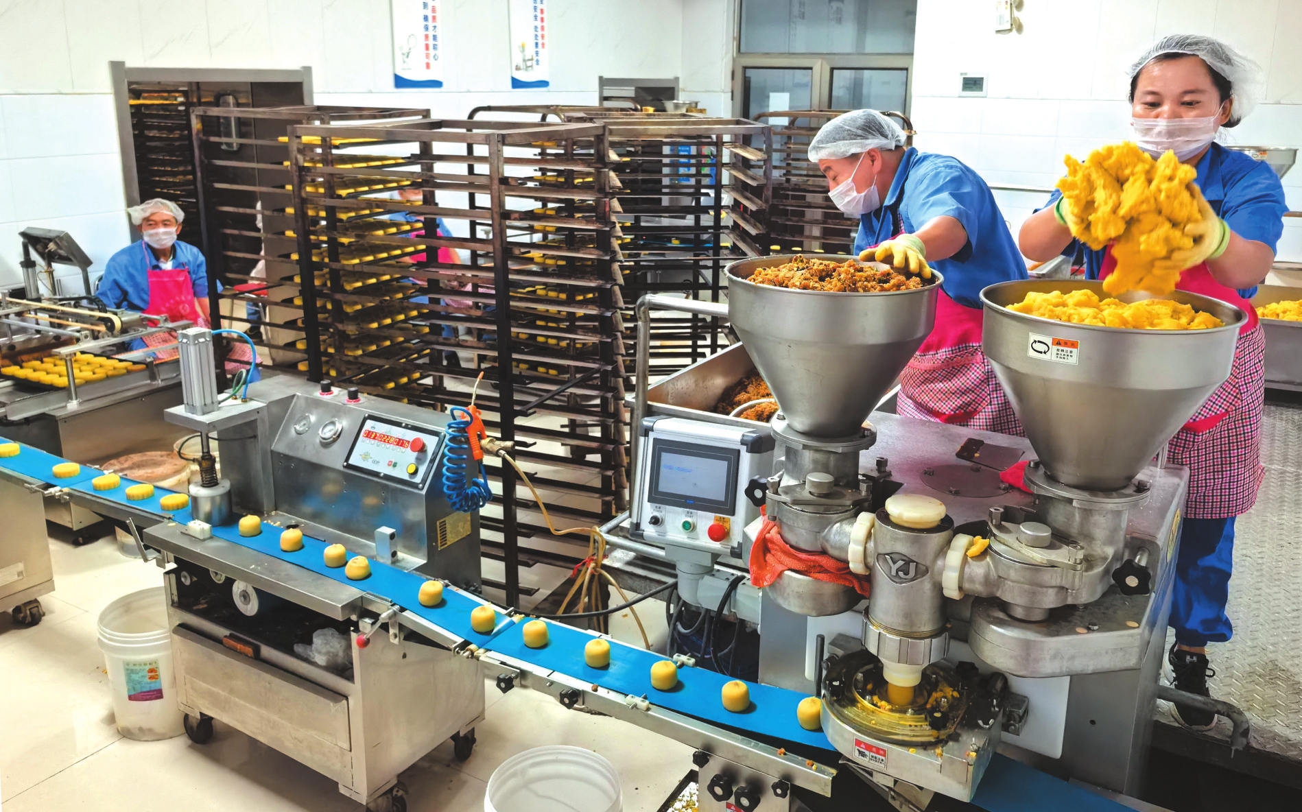 中秋節(jié)臨近,被譽(yù)為“中國(guó)北方月餅之鄉(xiāng)”的神池縣迎來月餅產(chǎn)銷旺季。近日,當(dāng)?shù)卦嘛炆a(chǎn)企業(yè)開足馬力,加緊生產(chǎn),以保障節(jié)日市場(chǎng)供應(yīng)。(鄭志東攝)