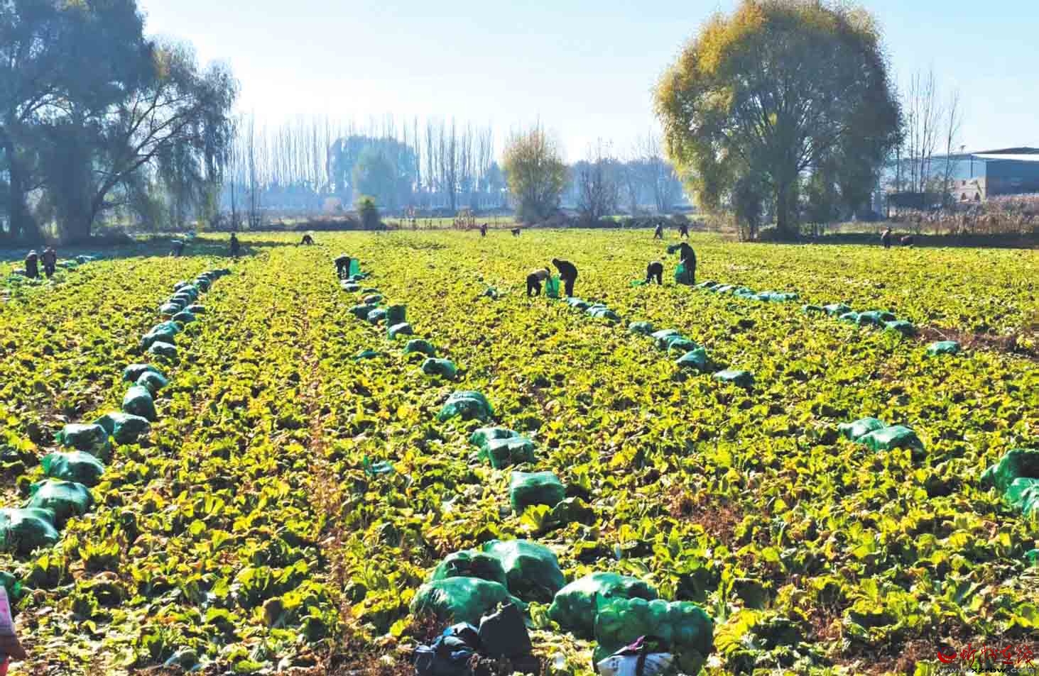| 忻府區(qū)東樓鄉(xiāng)前郝村村民們?cè)谔镩g采收白菜 |