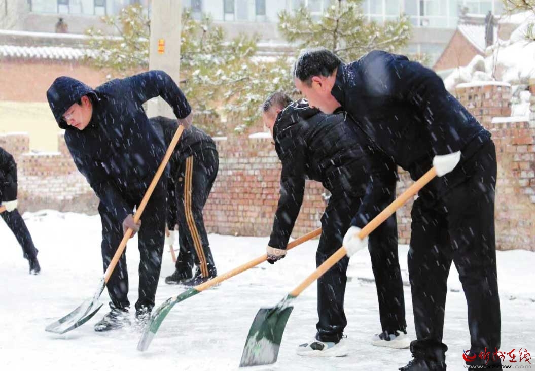 在縣城各街道路段,筆者看到,各單位干部職工頂風(fēng)冒雪,與環(huán)衛(wèi)工人一道投入到掃雪除冰的行列中,街頭巷尾到處可見忙碌的身影。雖然風(fēng)雪交加、天氣寒冷,但大家齊心協(xié)力,用實際行動,為城市的暢通和安全貢獻著一份力量。