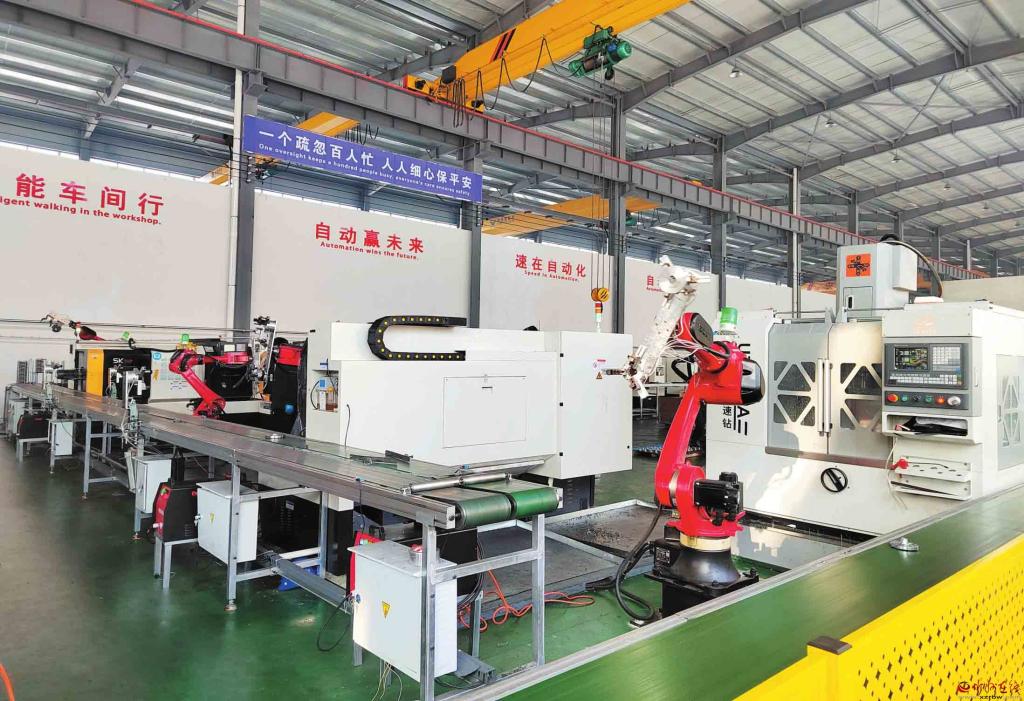 定襄縣高新技術(shù)創(chuàng)新服務(wù)中心小法蘭智能化生產(chǎn)線,是企業(yè)與高校合作研發(fā)的智能化生產(chǎn)成果轉(zhuǎn)化項(xiàng)目。該生產(chǎn)線可實(shí)現(xiàn)從原材料上料、加工到成品下料的全流程無(wú)人化操作,與過(guò)去法蘭生產(chǎn)線相比較,加工效率提升了約30%,產(chǎn)品生產(chǎn)成本整體降低了30%。(張玉虎 攝)