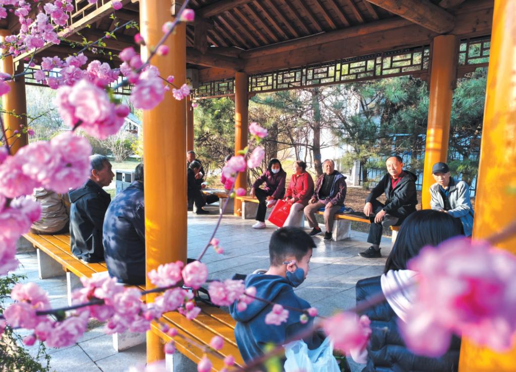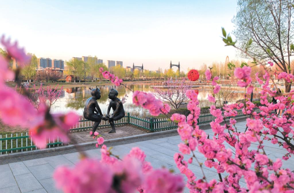 移步城中各大公共空間,更是一步一景:體育公園的桃杏花層層疊疊,迎來最佳觀賞期,粉白色的花瓣綴滿枝椏,與跑道上奔跑的身影相映成趣;人民公園的玉蘭花、碧桃、西府海棠次第開放,映著湖面的波光,岸邊垂柳抽出新綠,與繁花共同構(gòu)成層次豐富的春日圖景;遺山公園里,山桃、丁香香氣彌漫,市民三五成群,沿著步道悠然散步;古城西園的花開得繁盛熱烈,朱紅的古建檐角襯著艷而不俗的花簇,盡顯晉北古城的春日風(fēng)韻;作為城市生態(tài)名片的云中河景區(qū),步道兩側(cè)的繁花映水,偶有水鳥掠過水面,漾出一岸花影。