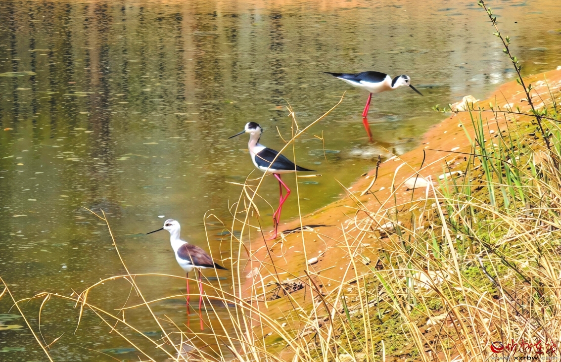 據(jù)悉,黑翅長腳鷸是鸻形目反嘴鷸科長腳鷸屬鳥類,因其體態(tài)修長、姿態(tài)優(yōu)雅,亦有“紅腿娘子”的美譽(yù)。它們多棲息于湖泊、沼澤等淡水濕地環(huán)境,以軟體動(dòng)物、魚蝦、甲殼類為食,是濕地生態(tài)系統(tǒng)的重要成員。更重要的是,黑翅長腳鷸對生存環(huán)境要求高,是水生環(huán)境變化的指示性物種之一。