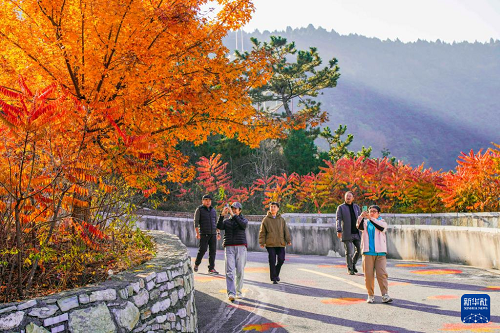 11月4日,游客在河北省遵化市南山常樂谷景區(qū)賞景拍照。(新華社發(fā) 劉滿倉 攝)