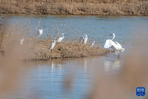 11月13日,在黃河三角洲國家級自然保護區(qū),白鷺在濕地休憩。(新華社記者 朱崢 攝)