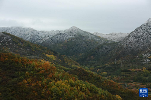 這是2025年10月17日在平?jīng)鍪嗅轻紖^(qū)拍攝的太統(tǒng)崆峒山國家級自然保護(hù)區(qū)深秋初雪景色。(新華社發(fā) 吳希會 攝)