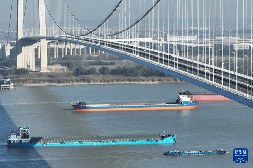 11月26日拍攝的南京新生圩長江大橋(無人機照片)。(新華社記者 毛俊 攝)