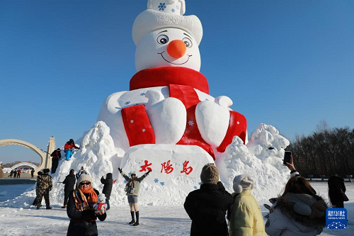 12月9日,第38屆太陽島雪博會標志性雪塑景觀“雪人先生”在哈爾濱太陽島風景區(qū)正式亮相。“雪人先生”高23.8米,用雪量達5000立方米。