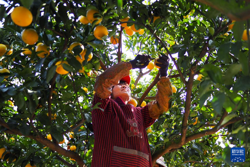 12月11日,在浙江省慶元縣竹口鎮(zhèn)黃壇水干果園區(qū)內,工人在采摘甜桔柚。(新華社記者 劉梓漪 攝)