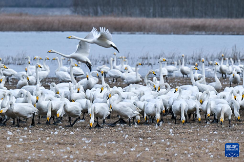 進入冬季,大批白天鵝來到河南省三門峽市黃河濕地棲息越冬。近年來,隨著當(dāng)?shù)夭粩嗉訌婞S河沿岸濕地生態(tài)保護工作,白天鵝的數(shù)量逐年增加。目前,三門峽黃河岸邊40余萬畝淺灘濕地已迎來萬余只白天鵝。