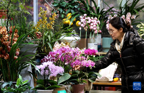 12月23日,市民在江蘇省蘇州市一家花卉市場(chǎng)選購(gòu)花卉。(新華社發(fā) 杭興微 攝)