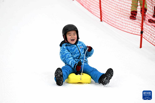 1月11日,小朋友在石家莊市“熱雪奇跡”滑雪場體驗冰雪運動。(新華社發(fā) 陳其保 攝)