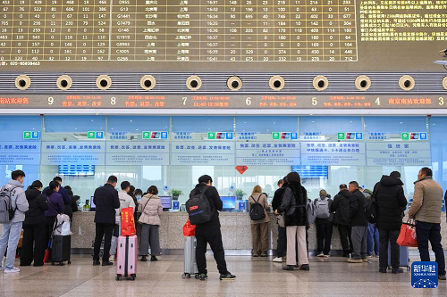 1月19日,旅客在南京南站售票處購(gòu)買火車票。(新華社發(fā) 蘇陽 攝)