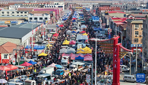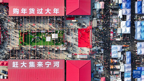 這是1月26日拍攝的天津蘆臺大集(無人機照片)。(新華社記者 孫凡越 攝)