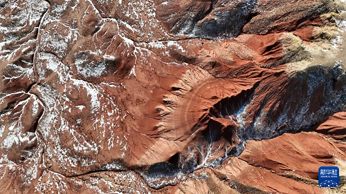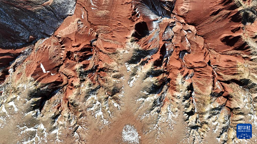 這是1月29日在內(nèi)蒙古烏蘭察布市四子王旗拍攝的紅崖臺(tái)地景觀(無(wú)人機(jī)照片)。(新華社記者 馬金瑞 攝) 紅崖臺(tái)地位于內(nèi)蒙古烏蘭察布市四子王旗北部,是內(nèi)蒙古四子王國(guó)家地質(zhì)公園的重要組成部分。這里山丘聳立、溝壑縱橫,山體呈現(xiàn)赤紅色。隆冬時(shí)節(jié),稀薄殘雪點(diǎn)綴其間,在蒼茫天地中勾勒出一幅靜謐而壯麗的自然畫(huà)卷。 (責(zé)任編輯:蔡文斌) |
