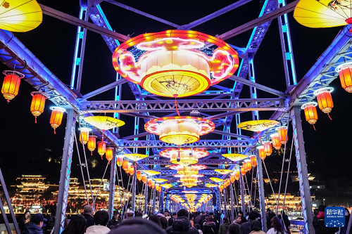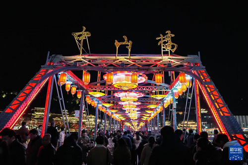 2月10日,甘肅省蘭州市在蘭州黃河鐵橋中山橋、東方紅廣場等城市地標(biāo)及城區(qū)主干道布置的燈飾燈組正式接電亮燈,營造出喜慶祥和的新春佳節(jié)氛圍。