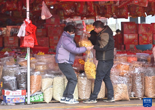 2月11日,在柳州市柳南區(qū)瑞龍路一家農(nóng)產(chǎn)品批發(fā)市場,市民選購年貨。(新華社記者 黃孝邦 攝)