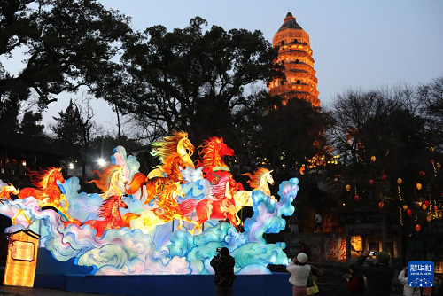 2月11日,2026年蘇州虎丘山燈會(huì)正式亮燈迎客,游客賞燈拍照。(新華社發(fā) 杭興微 攝)