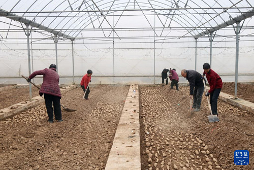2月25日,河南省洛陽市汝陽縣劉店鎮(zhèn)沙坪村村民在溫棚內(nèi)培育優(yōu)質(zhì)紅薯苗。(新華社發(fā) 康紅軍 攝)
