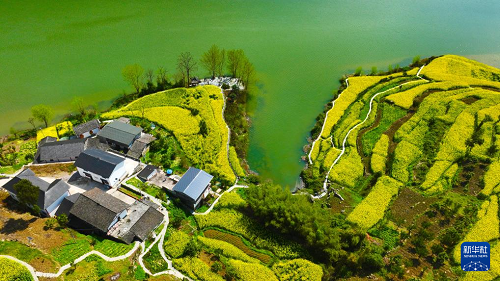 重慶市黔江區(qū)阿蓬江鎮(zhèn)大坪村油菜花開(kāi)放(3月4日攝,無(wú)人機(jī)照片)。(新華社發(fā) 楊敏 攝)