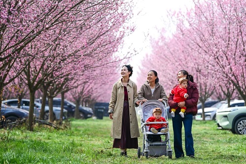 3月11日,游人在西安市鄠邑區(qū)甘河街道丁村梅花種植園內(nèi)賞花。(新華社記者 鄒競一 攝)