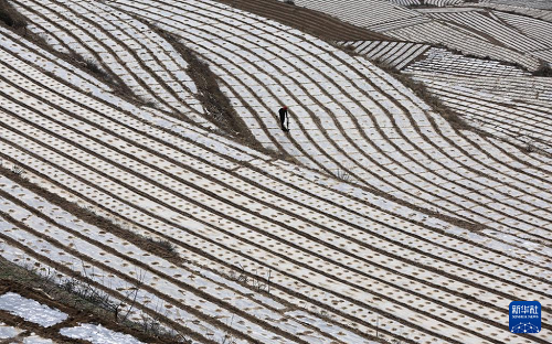 4月1日,甘肅省天水市武山縣馬力鎮(zhèn)的農(nóng)民在田間點(diǎn)種玉米。(新華社發(fā) 王克賢 攝)