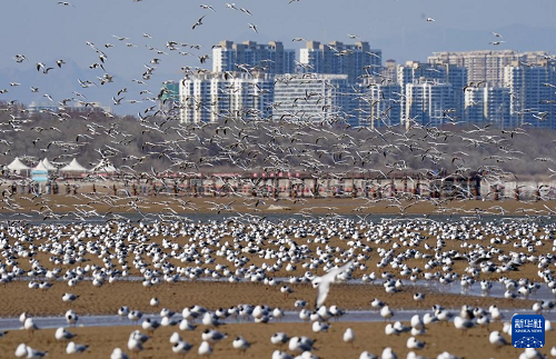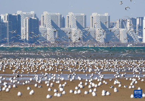 這是4月7日在河北省秦皇島市北戴河區(qū)沿海地區(qū)拍攝的海鷗。(新華社記者 楊世堯 攝)