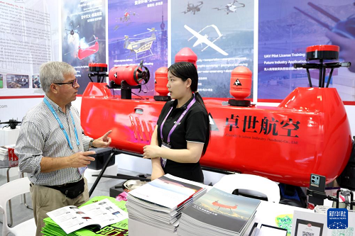 4月15日,外商在廣交會(huì)現(xiàn)場咨詢了解消防無人機(jī)。(新華社記者 盧漢欣 攝)