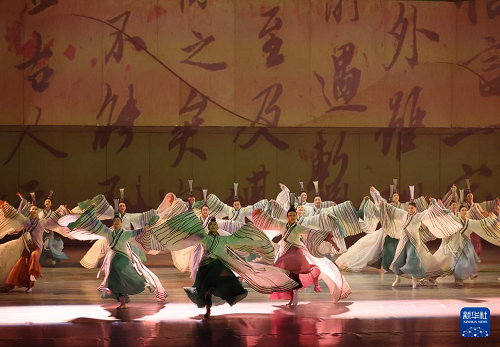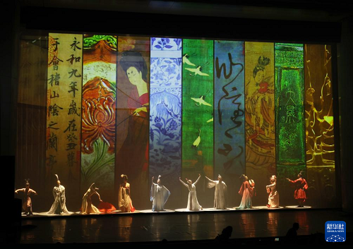 在遼寧大劇院拍攝的《古色·國寶遼寧》演出現(xiàn)場(4月19日攝)。(新華社記者 李鋼 攝)