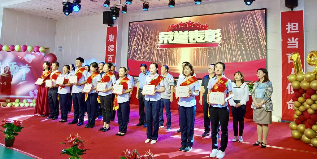 活動(dòng)現(xiàn)場,學(xué)校對(duì)14名優(yōu)秀教師進(jìn)行了表彰,其中1名為優(yōu)秀教育工作者,8名為模范教師,5名為模范班主任。通過表彰先進(jìn),鼓勵(lì)老師們再接再厲,繼續(xù)發(fā)揮愛崗敬業(yè)、立德樹人,三尺講臺(tái)育英才的精神,為下一代成長教育發(fā)揮更大的作用。